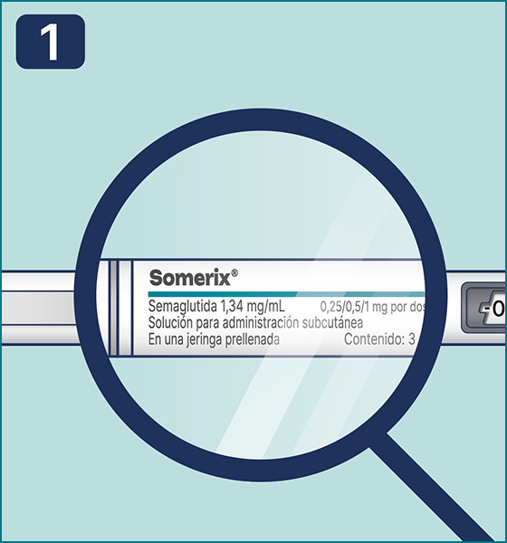Asegúrese de que la pluma contenga Somerix 0.25 mg/dosis, 0.5 mg/dosis, 1 mg/dosis. Esto es especialmente importante si utiliza más de un tipo de medicamento inyectable.