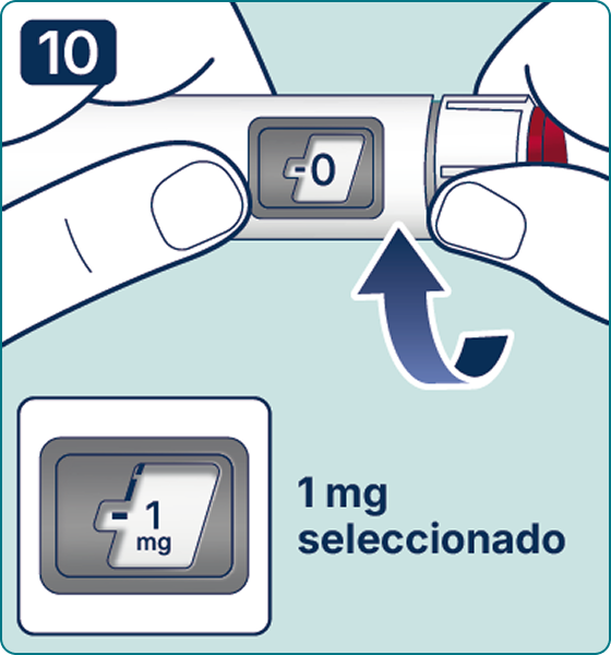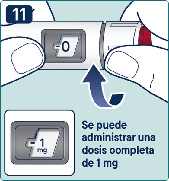 10. Gire el selector de dosis hasta seleccionar 0.25 mg, 0.5 mg o 1 mg