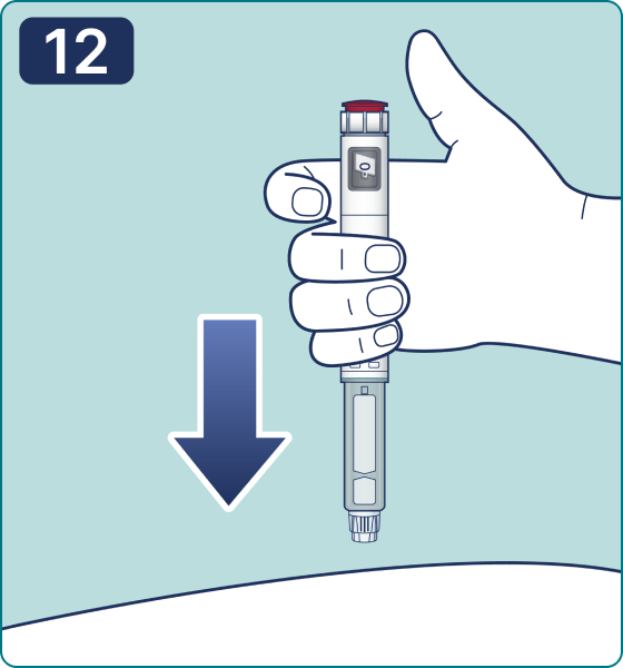 13. Asegúrese de que la ventana de dosificación sea claramente visible para la persona que administra la inyección
