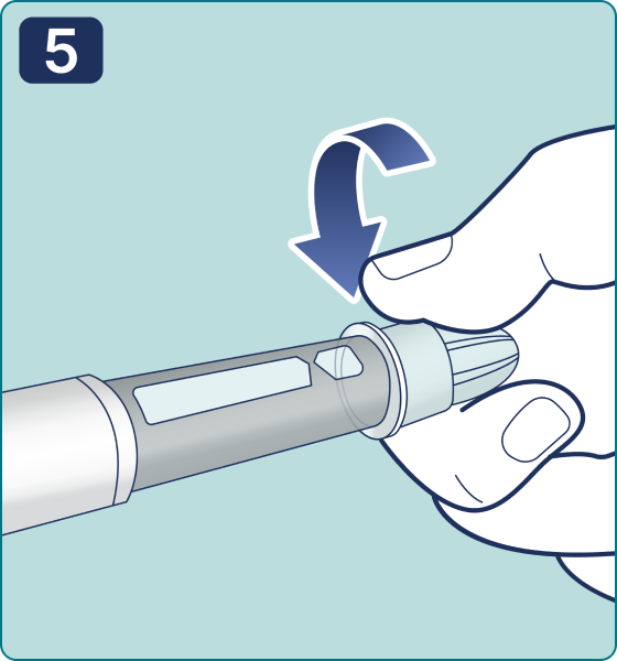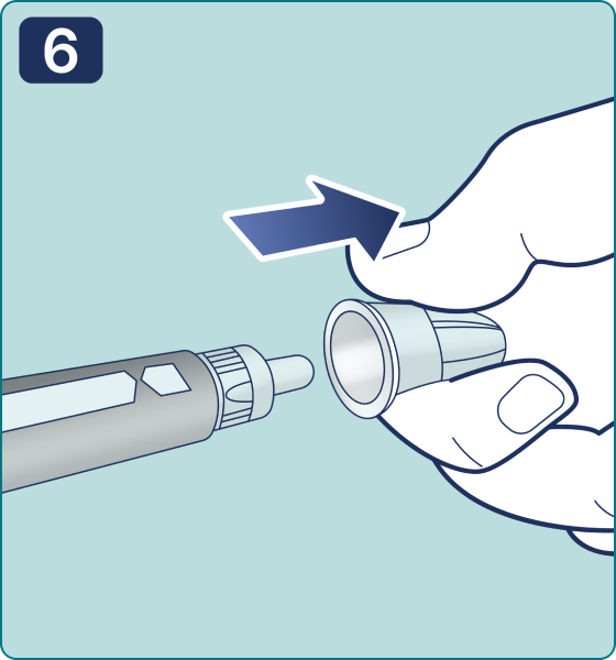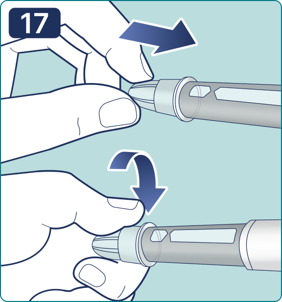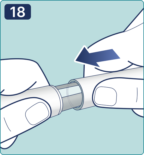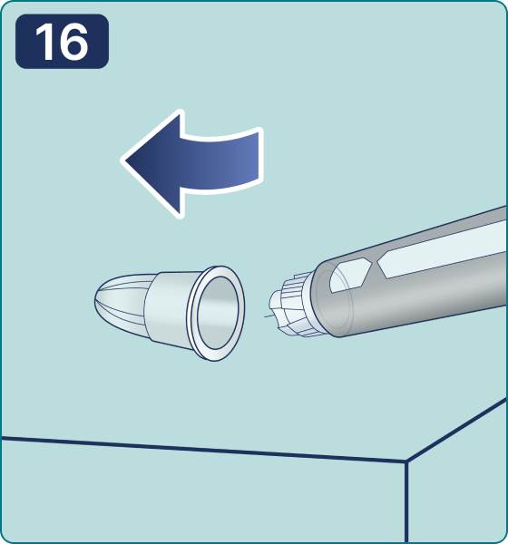 18. Coloque el capuchón de la pluma jeringa y almacene la pluma jeringa hasta su próximo uso según las condiciones de almacenamiento especificadas en las instrucciones de uso del médico del medicamento