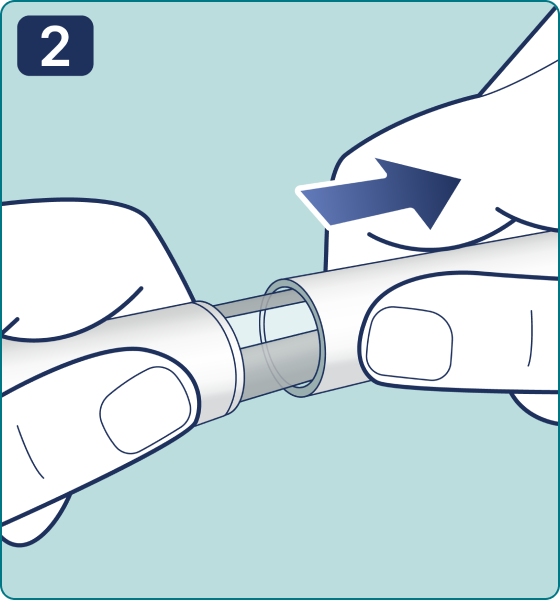 2) Retire el capuchón exterior de la aguja y guárdelo para más tarde. Lo necesitará después de la inyección para retirar la aguja de la pluma jeringa de forma segura