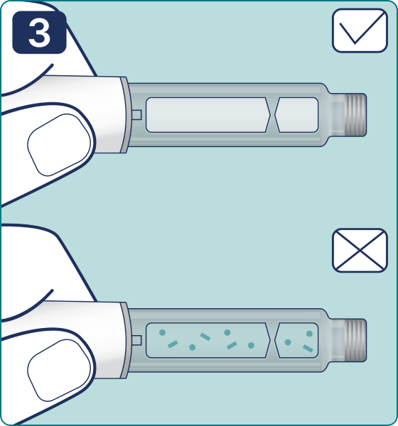 3. Compruebe que la solución de la pluma jeringa es transparente, incolora o casi incolora